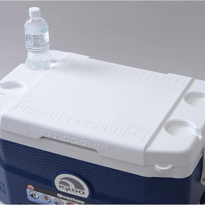 Igloo Quantum 55 — это современный изометрический контейнер, который вмещает в себя около 15 литров продуктов питания, благодаря поддержанию необходимого показателя температуры на протяжении суток позволит сохранить качество пищи на достойном уровне. Присутствует поддон, а особенная конструкция верхней крышки позволяет открыть контейнер с помощью одного нажатия на кнопку.