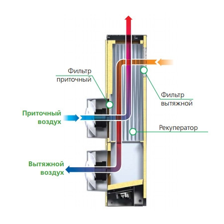 - Пластинчатый противоточный пластиковый рекуператор с эффективностью рекуперации до 79%