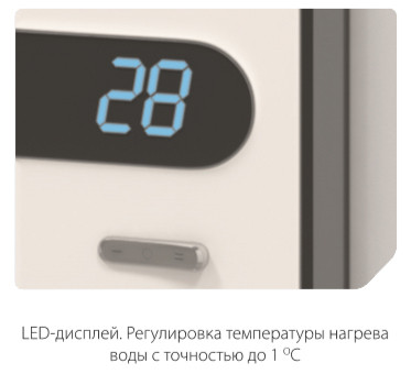 - Регулировка температуры нагрева воды в диапазоне от 30оС до 75оС с точностью до 1оС