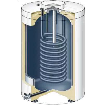- Нагрев всего объема воды с помощью змеевика, достигающего дна водонагревателя.