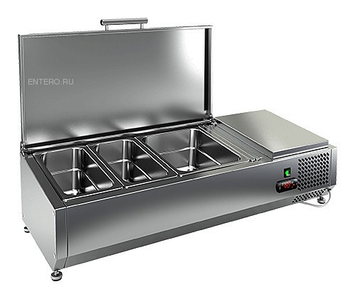 Описание Настольная холодильная витрина HICOLD VRTU 1000 к PZ3 предназначена для демонстрации, охлаждения и кратковременного хранения салатов, гарниров, закусок и других блюд на предприятиях общественного питания и торговли. Модель оснащена крышкой и ножками. Витрина разработана для холодильного стола PZ3-11/GN. Конструкция выполнена из нержавеющей стали. Дополнительные характеристики: Вместимость гастроемкостей: 2х GN 1/3 + 1х GN 1/2 глубиной 150 мм Характеристики Температурный режим: от 2 до 7 °С Холодильный агрегат: встроенный Гастронормированная: Да Напряжение: 220 В Мощность: 0.15 кВт Ширина: 1000 мм Глубина: 385 мм Высота: 279 мм Вес (без упаковки): 23 кг Страна-производитель: Россия