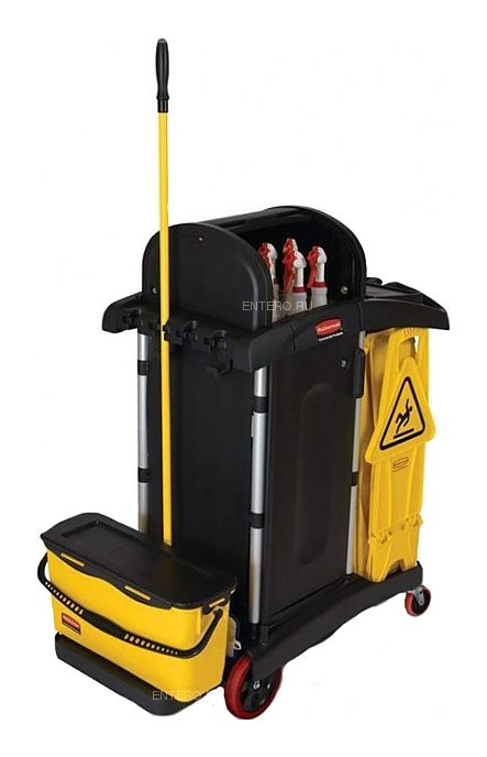 Описание Тележка Rubbermaid FG9T7500BLA предназначена для хранения, упорядочивания и транспортировки инструментов, предназначенных для уборки помещений в медицинских учреждениях. Изделие оснащено боксом с запирающейся крышкой, шкафчиком с закрывающимися дверьми, отсеком для мусора с крышкой и 4 бесшумными колесами на подшипниках, 2 из которых поворотные. Возможна установка на модель 2 дезинфицирующих ведер. Корпус выполнен из алюминия и полиэтилена. В комплект поставки входят 2 съемных контейнера дезинфицирующего средства объемом 9 л. Особенности: Ручка с удобным захватом Резиновые держатели инструментов с 2-х сторон Крючки для 4 знаков безопасности Повышенная безопасность Характеристики: Габариты: 1226x559x1359 мм Габариты в упаковке: 991x610x686 мм Вес с упаковкой: 31,75 кг Цвет: черный / желтый