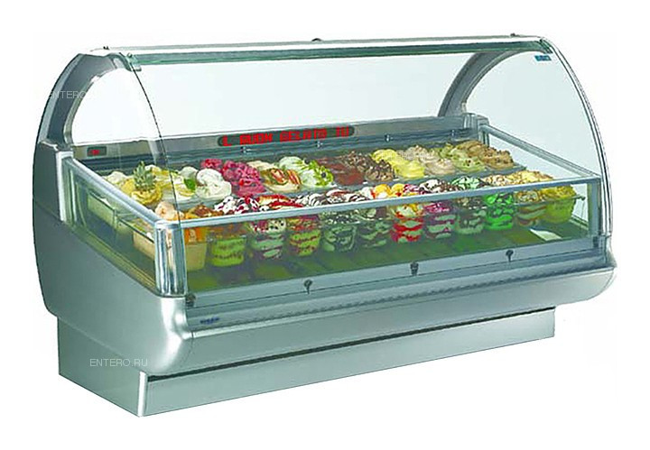 Описание Витрина для мороженого ISA Gelatoshow 2 220 RV используется на предприятиях общественного питания и торговли для демонстрации и хранения мороженого, сорбета и йогурт-мороженого. Каркас изготовлен из углеродистой стали, окрашенной порошковой краской, дно зоны выкладки - из полированной нержавеющей стали, задняя панель - из пластифицированной стали и контейнеры - из прозрачного полиуретана. Цельный корпус имеет изоляцию из пенополиуретана, вспененного углекислотой, без использования озоноразрушающих веществ. Особенности: Вентилируемое охлаждение Полугерметичный компрессор c электронным блоком управления Цифровой термометр в рабочей зоне Двухконтруная циркуляция воздуха Размораживание осуществляется методом «обращения цикла», обеспечивающим минимальные продолжительность размораживания и скачок температуры Стеклянная надстройка с гнутым закалённым передним стеклом, доходящим до уровня дна зоны выкладки для обеспечения трехмерного обзора продукта Вытяжные боковые панели из металкрилата для облегчения чистки витрины Внутренняя подсветка: LED Климатический класс: 4 Хладагент: R404a Регулируемые ножки Дополнительные характеристики: Температура продукта: от -16 до -14 °С Электрическая мощность: 4,52 кВт Мощность размораживания: 5,62 кВт Используемые контейнеры: 24x 5 л (360х165х120 мм) 16x 5 л (360x250x80 мм) Максимальная температура окружающей среды: 30 °С Максимальная относительная влажность окружающей среды: 55% ??Опции (заказываются отдельно): Поворотные колеса Конусный держатель Опция "Бегущая строка" Индивидуальный дизайн боковых панелей Цвета передней панели: RAL 1035 - бежевый перламутровый RAL 5026 - синий перламутровый RAL 2013 - оранжевый перламутровый 445 - желтый металик 440 - серебряный RAL 9006 - алюминий 407 BL 2014 - светло-голубой металик 433 BT 5014 - синий металик 567 - коричнево-красный Характеристики Температурный режим: от -20 до 2 °С Объем: 1529 л Гастроемкость: 360х165 мм Напряжение: 380 В Ширина: 2232 мм Глубина: 1205 мм Высота: 1373 мм Вес (без упаковки): 526 кг Страна-производитель: Италия