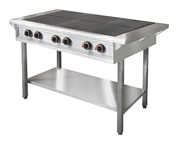 Описание Электрическая плита ITERMA ПКЭ-6ПР-1475/850/860-24 предназначена для приготовления различных блюд в наплитной посуде на предприятиях общественного питания и торговли. Модель оснащена полкой и ножками, регулирующимися по высоте. Корпус и полка выполнены из нержавеющей стали. Особенности: Cхема управления с защитой от перегрева Плавное регулирование температуры Снижение расхода электроэнергии на холостом ходу на 30% Долгий срок эксплуатации электрических элементов Дополнительные характеристики: Мощность одной конфорки: 3 кВт Рабочая температура конфорок, не менее: 350 °С Характеристики Установка: напольная Оснащение: подставка (стенд) Количество конфорок: 6 Размер конфорок: 300x415 мм Конфорка: чугунная Напряжение: 380 В Мощность: 18 кВт Ширина: 1475 мм Глубина: 850 мм Высота: 860 мм Вес (без упаковки): 159.3 кг Страна-производитель: Россия