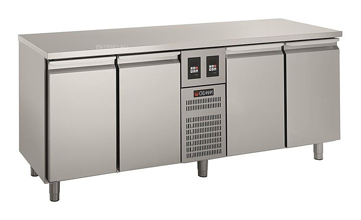 Описание Морозильный стол Gemm THBC/220 серии ATLAS PLUS предназначен для раскатки теста, обработки ингредиентов для приготовления блюд, заморозки и хранения скоропортящихся продуктов и напитков на предприятиях общественного питания и торговли. Модель оснащена цифровым термостатом. В комплект поставки входят по 2 решетки размером GN 1/1 для каждой двери. Особенности: Автоматическая система размораживания Автоматическое испарение конденсата воды Охлаждение осуществляется вентилируемой системой с помощью испарителей, расположенных через каждые 2 отсека Хладагент: R404a Тропический климатический класс - эксплуатация при температуре окружающей среды 43 °C Нержавеющие элементы из высококачественной стали AISI 304 Полиуретановая изоляция толщиной 60 мм Двери и ящики с магнитными прокладками, которые легко заменить Округлый пол в холодильных отсеках для облегчения чистки и обеспечения максимальной гигиены Регулируемые по высоте ножки Дополнительные характеристики: Температурный режим: Левая сторона: от -2 °C до 8 °C Правая сторона: от -20 °C до -15 °C Высота базы стола без ножек и столешницы: 760 мм Потребляемая мощность: 0,62 кВт Мощность: Левая сторона: 0,32 кВт Правая сторона: 0,34 кВт Опции (заказываются отдельно): Замена двери на 2 выдвижных охлаждаемых ящика CRH/2BT Установка замка на 1 дверь SPH/01 Дополнительные решетки размером GN 1/1 Направляющие для решеток Крышка из нержавеющей стали размером GN 1/1 Комплекс колес диаметром 125 мм Характеристики Расположение агрегата: по центру Температурный режим: от -20 до 8 °С Объем: 540 л Столешница: без борта Рабочая поверхность: нерж. сталь Количество дверей: 4 Напряжение: 220 В Потребляемая мощность: 0.66 кВт Ширина: 2230 мм Глубина: 700 мм Высота: 900 мм Страна-производитель: Италия