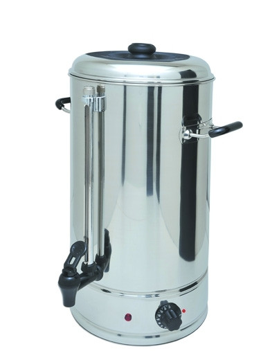 Кипятильник электрический заливной GASTRORAG DK-WB-20 настольный, автономный (наливной), емкость резервуара 20 л, открытый ТЭН, терморегулятор, мерное стекло, сливной кран, материал корпуса - нерж.сталь.