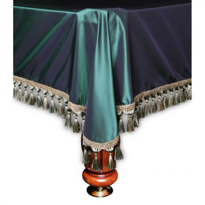 Покрывало премиум-класса из плотного шелка с античными кистями украсит интерьер вашей бильярдной комнаты и защитит покрытие стола от преждевременного изнашивания Солнечный свет, случайные царапины и влага портят внешний вид стола, а пыль - причина, по которой сукно требует частой чистки и в итоге - преждевременной дорогостоящей перетяжки. Защитите стол покрывалом в промежутке между играми, это сэкономит ваши время и деньги.
