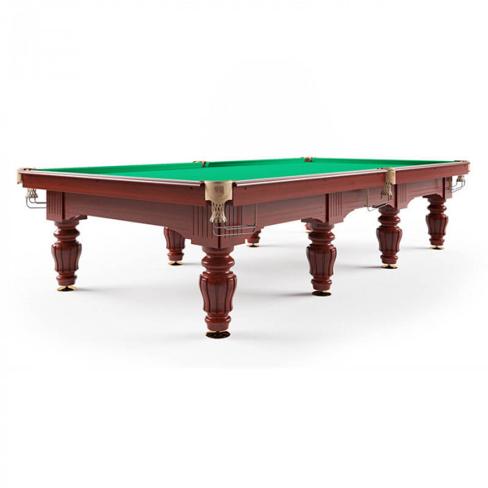 «Барон» сделан из лучших сортов древесины: дуба или ясеня – выбрав любой из этих вариантов, вы впишете стол под любой интерьер. Удачная конструкция снимает напряжение материалов, придает высокий уровень жесткости и защищает от растрескивания. Сланцевая плита Orero, являющаяся основой для поля, надежно крепится к бортам благодаря увеличенному количеству фиксаторов. Удобная система позволяет регулировать лузы при поверке и монтаже, а высококачественное британское сукно прослужит необычайно долго.